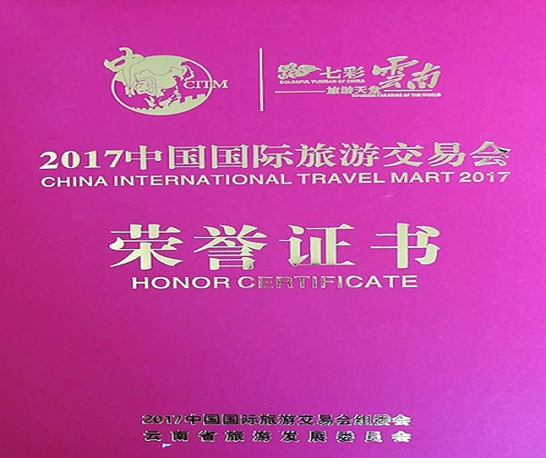 2017中國國際旅游交易會(huì)榮譽(yù)證書